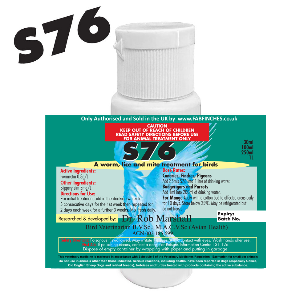 Dr Rob Marshall S76 for Bird Mites, Lice, Worms in Cage & Aviary Birds plus Pigeons